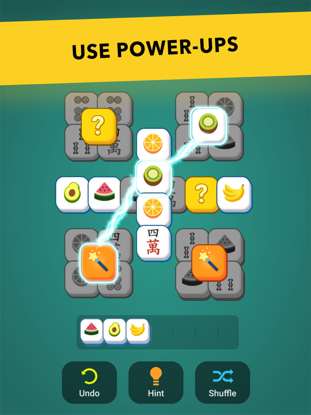 - Power-ups to help you when you're stuck: HINTS, UNDOS, and SHUFFLES