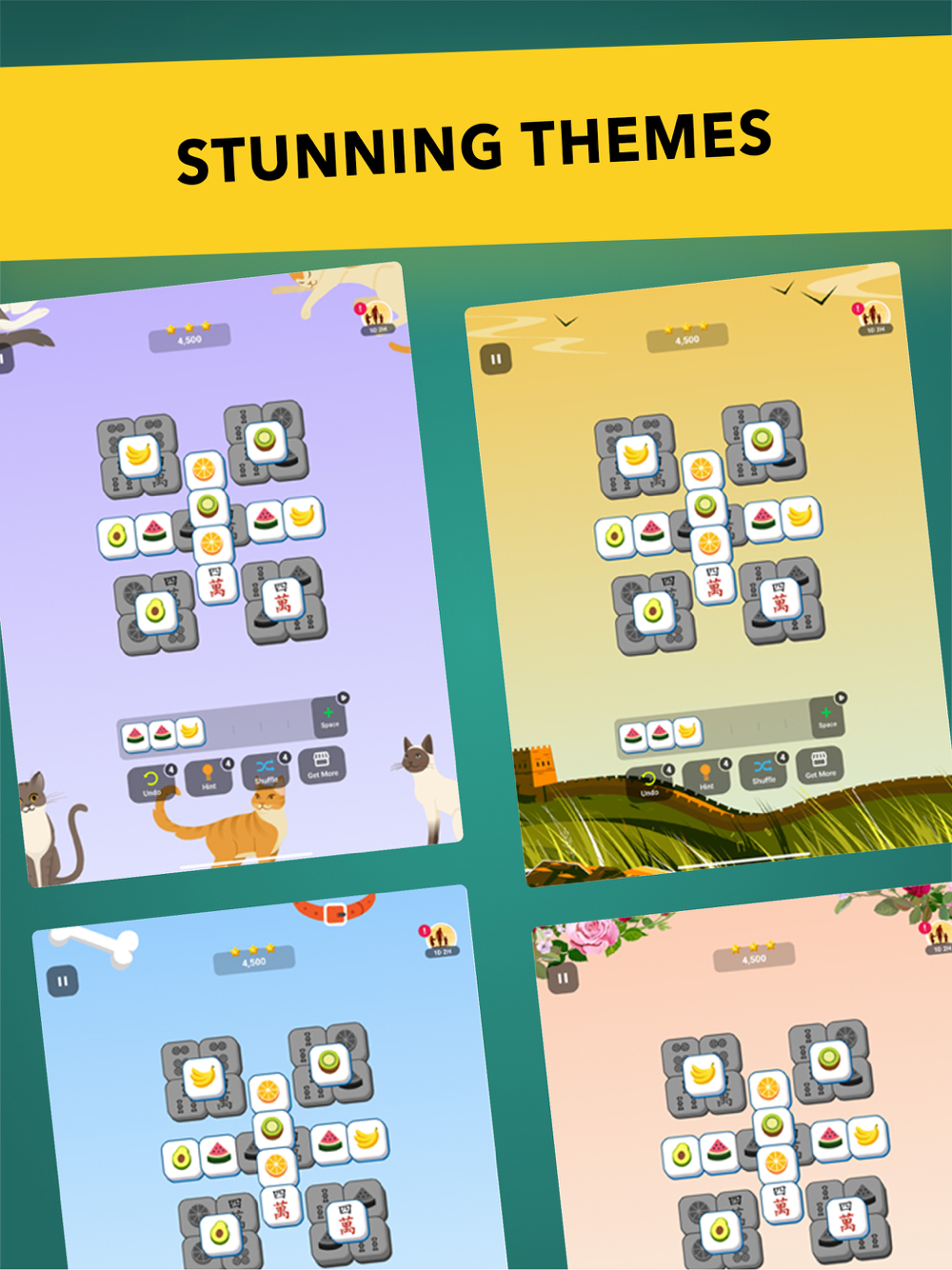 Clear the board by merging three Mahjong tiles at the bottom and unlock a new, intriguing puzzle with each level you complete. Mahjong enthusiasts and Match 3 fans alike will adore this delightful fusion of both worlds!