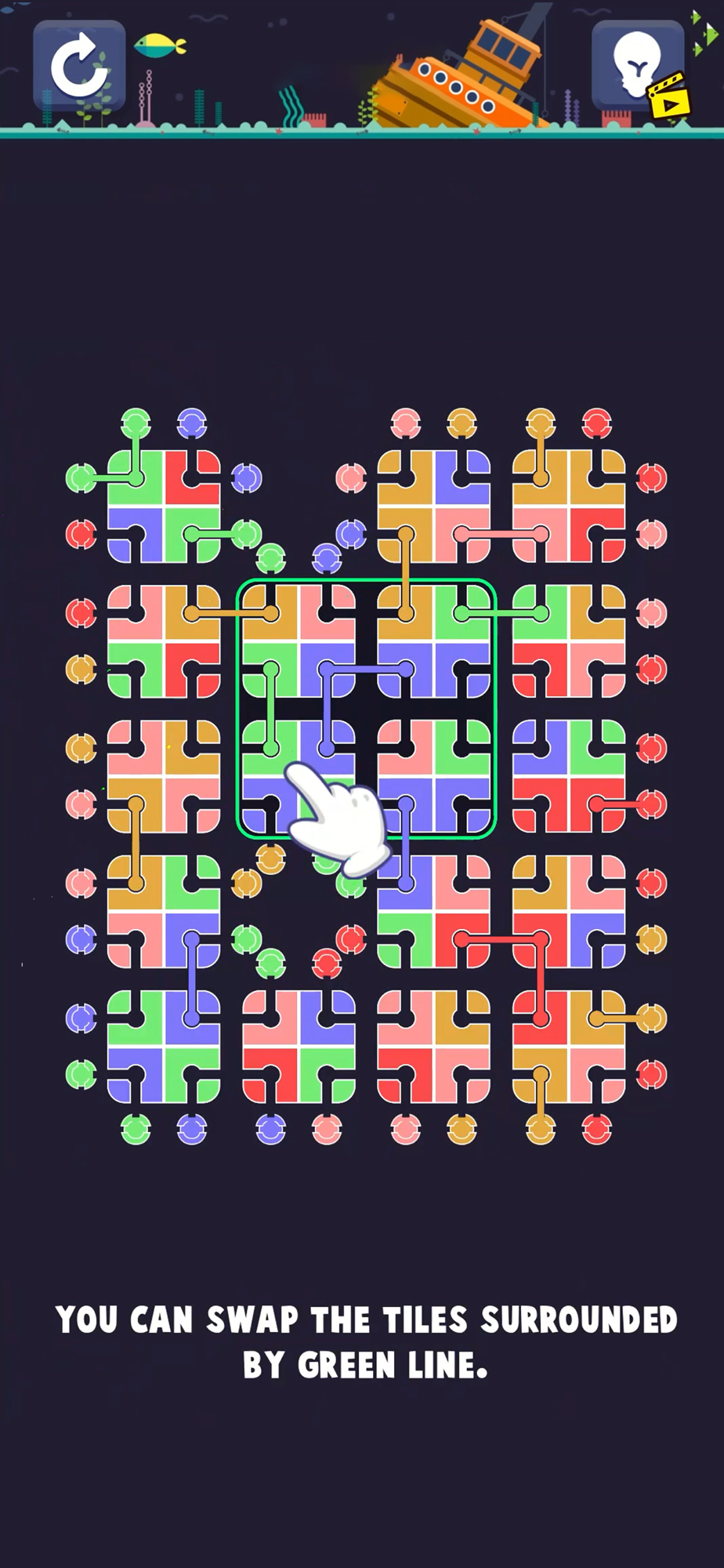 • Tap to arrange the tiles so that their sides match each other in colors.