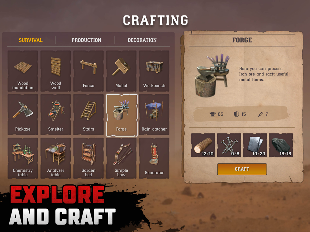 Dive into in a post-apocalyptic open world full of amazing locations, quests, incredible monsters, various crafting and raft building and strengthening! Collect and produce useful resources, upgrade buildings and make durable armor and weapons. Try to go on an expedition through the desert and find other survivors.