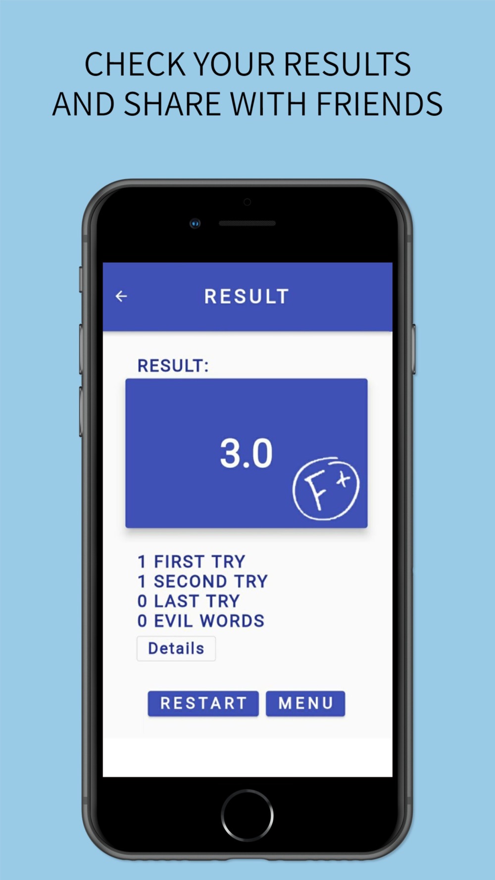 -Try again the most difficult words in the "Evil Words" menu. Sit tight and start your improvement!