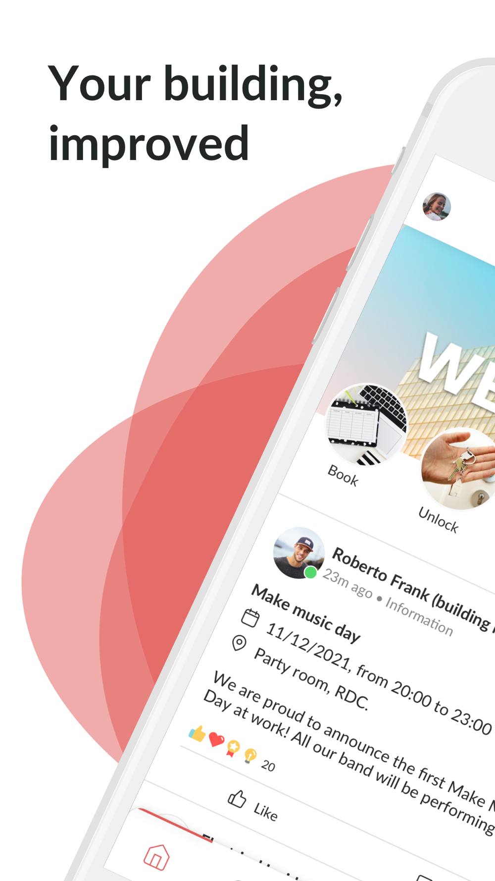 Join the app of your building (office or home) and enjoy many services directly from your mobile.