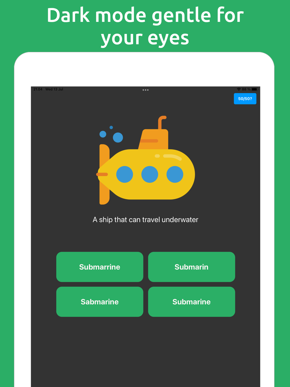 Enjoy our Word Spelling Games any time at any place - while commuting to work, waiting in a line or before going to bed. Select light mode or dark mode to spell words in any way you like.