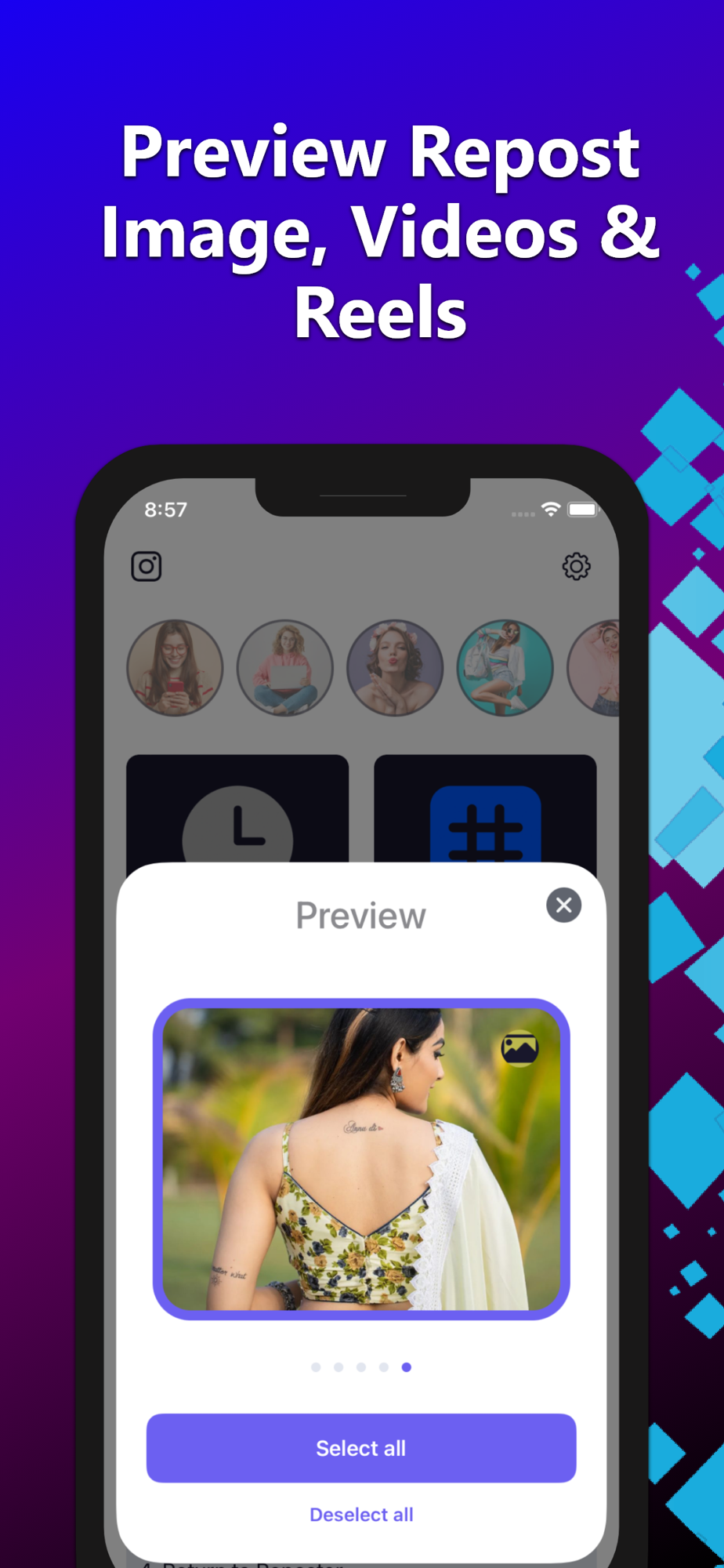 Reposter for Instagram helps you repost Instagram photos and videos by keeping credit with multiple colors