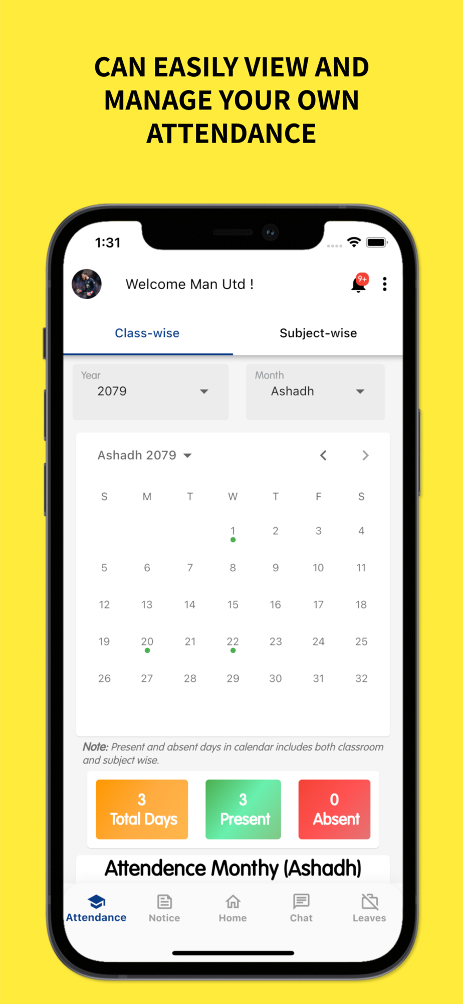 Checking your attendance is very simple through this app. It is not necessary to ask for attendance register with your teacher to know your attendance record. You can know each and every detail of your attendance through this feature of the app.