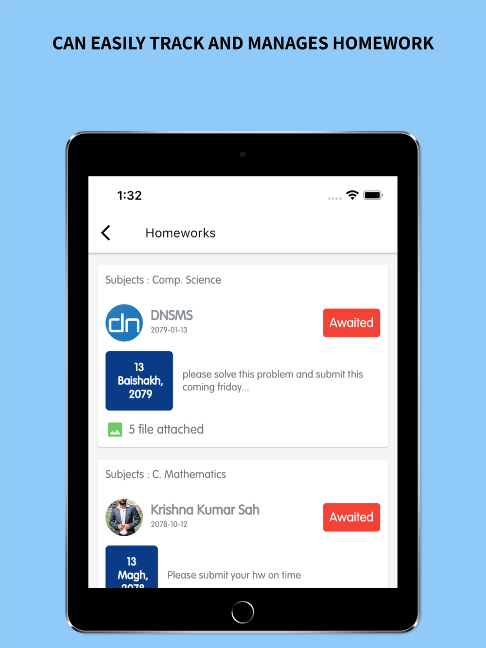 Now you shouldn’t worry if you forgot what your teacher assigned you as homework. You can find all the records of your homework in this app. What you need to do is log in to your Digital Nepal Student App and get the homework list on your mobile screen.