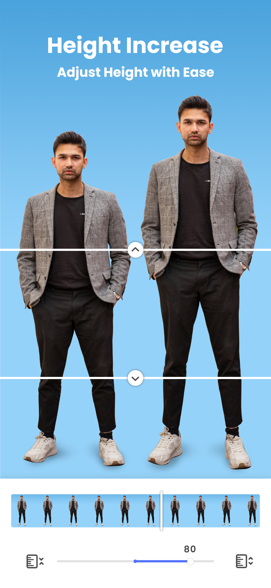 Get perfect body shape with one tap. With preset overall body models, Manlook can save you from tedious editing work. All you need to do is choose the body shape you want, and use the slide bar to adjust the transformation.