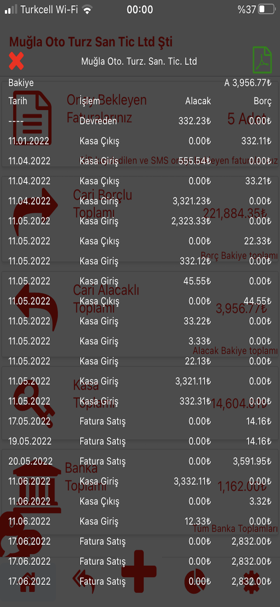 - Genel Durum(Nakit, Borç, Alacak, Banka Toplamları),