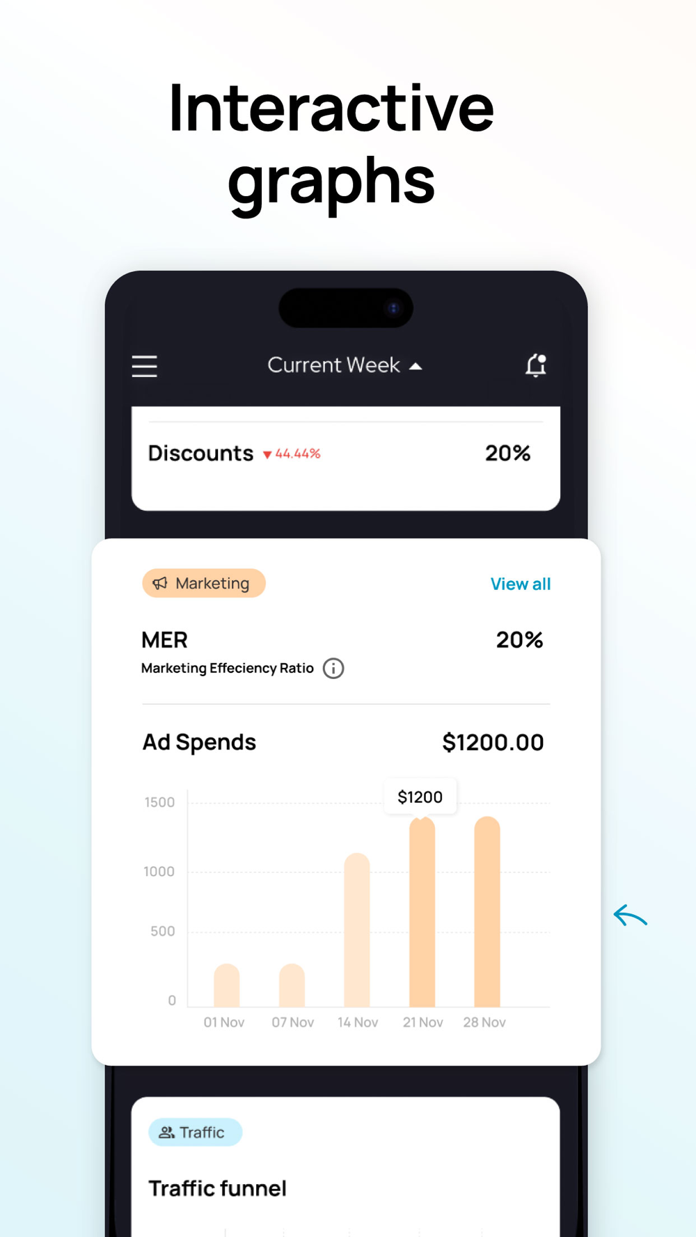 SuperCEO is your personal data scientist that never sleeps. Get accurate Shopify store sales insights to track your venture’s growth from the total number of sales to the average order value on your mobile & email every day.