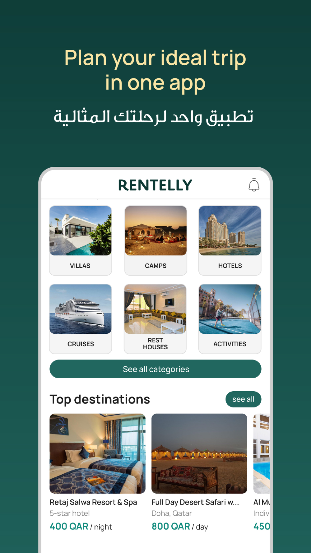 With hundreds of options, Rentelly is the most trusted platform for all your online rental Doha bookings, a one-stop shop to rent villas and camping in Qatar.