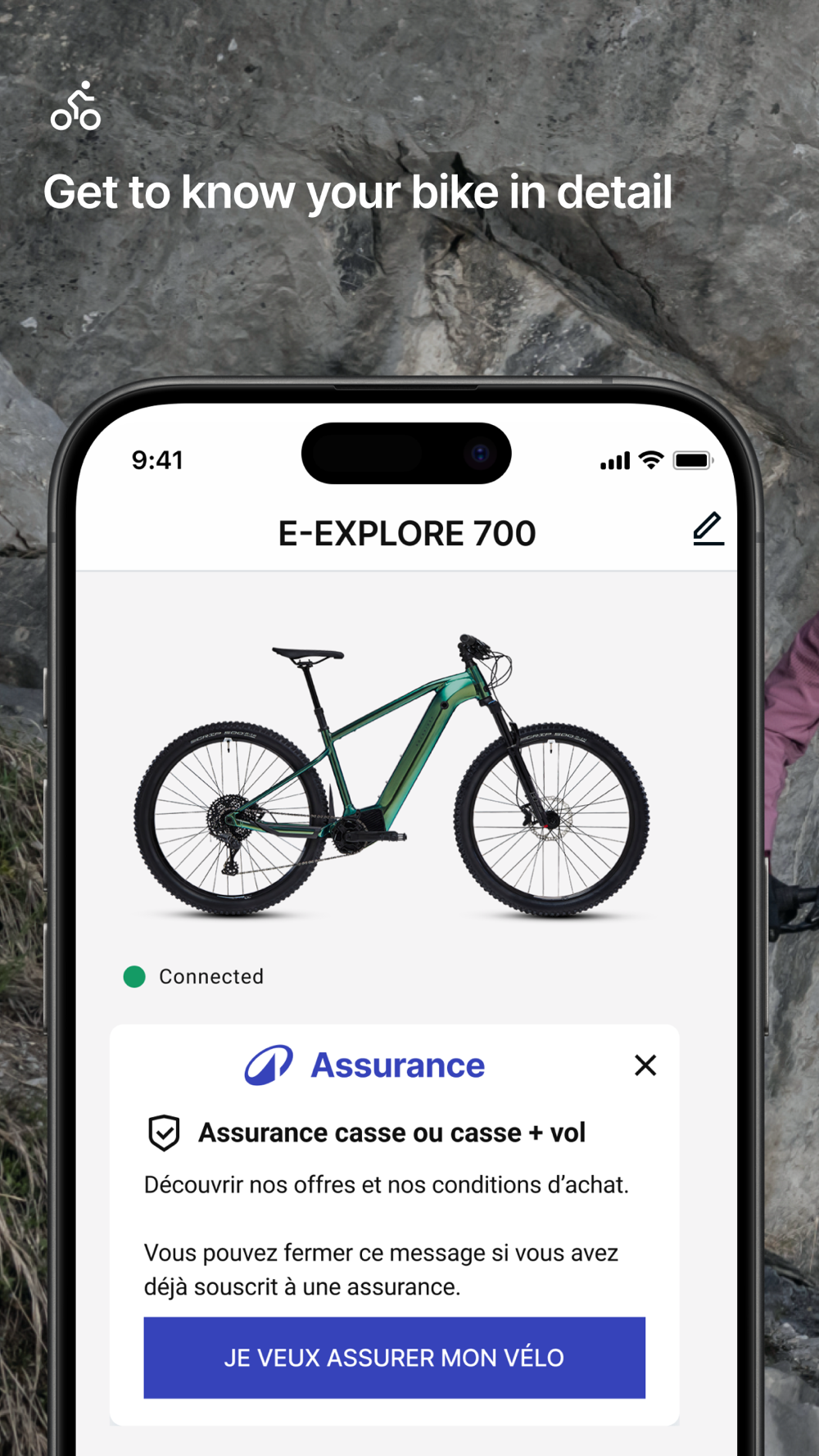 Seamlessly update your bike's software with the app. You'll always have the latest features without leaving home. You can also insure your bike against damage and theft for complete peace of mind.