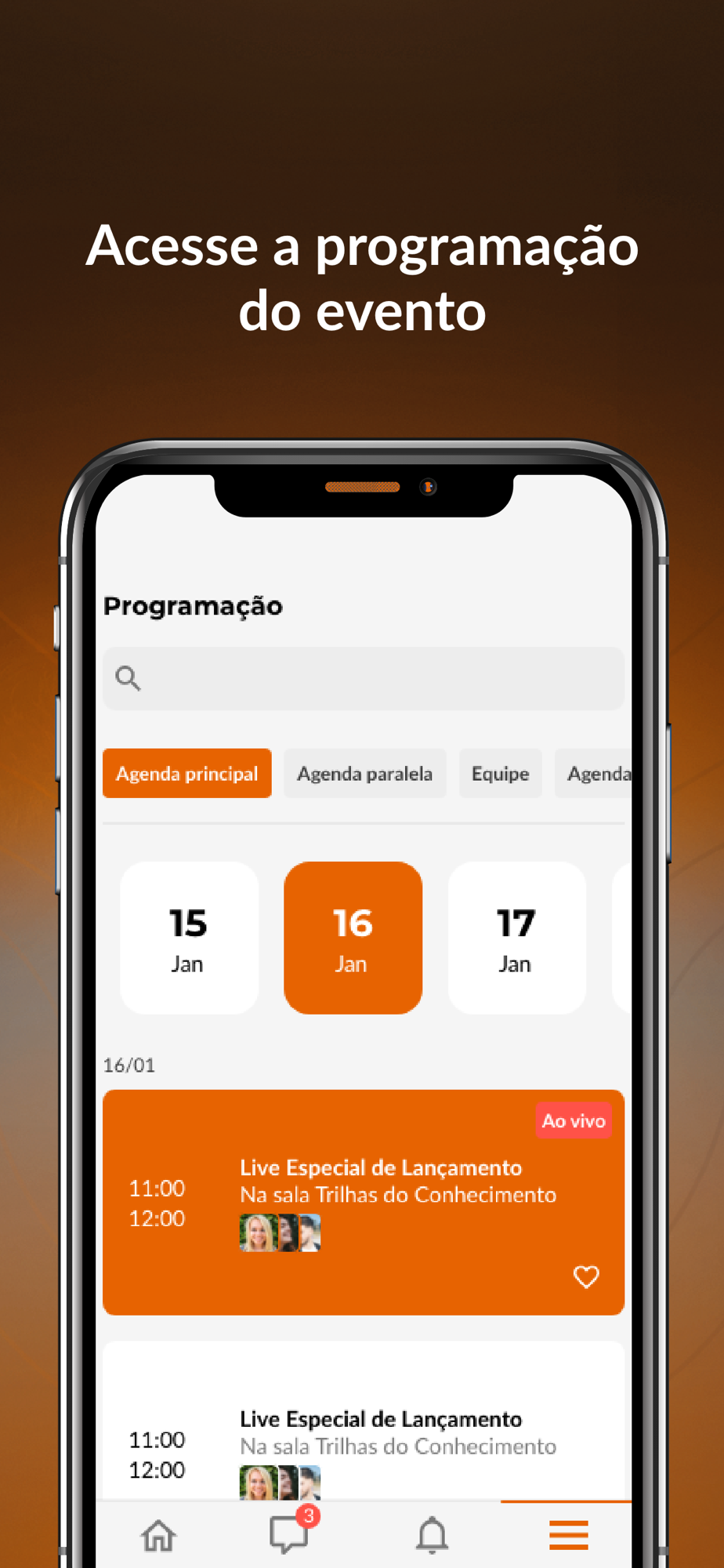 Com o aplicativo do Time Out 2022, você tem acesso a uma rede social exclusiva, pode fazer novos contatos, enviar perguntas aos palestrantes, trocar mensagens com outros participantes, enfim, interagir com a comunidade. Além disso, você pode consultar a programação, avaliar conteúdos, dar feedback e responder quizzes. Utilize o APP e aproveite ao máximo os recursos.