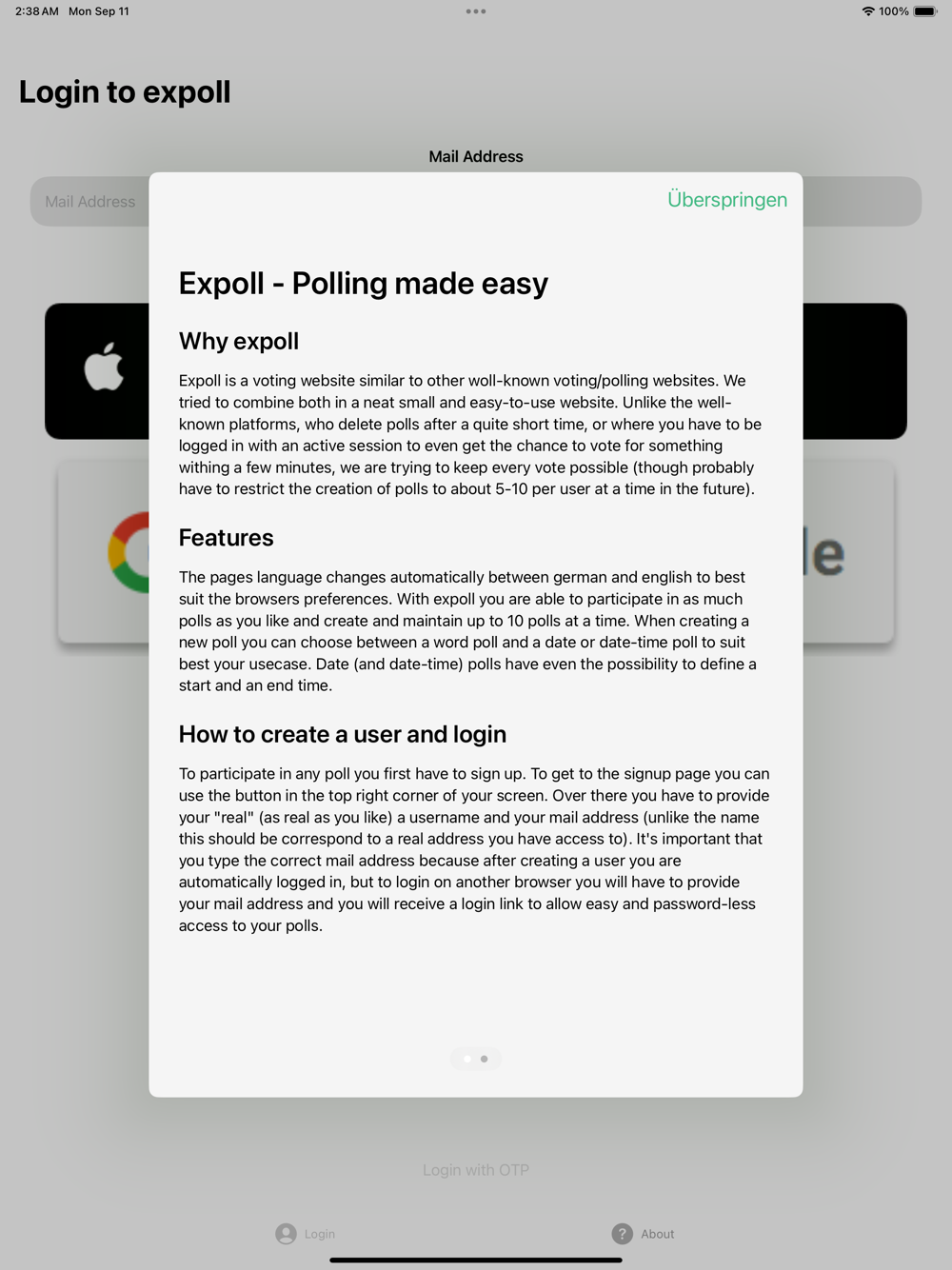 Expoll is a voting website similar to other woll-known voting/polling websites. We tried to combine both in a neat small and easy-to-use website. Unlike the well-known platforms, who delete polls after a quite short time, or where you have to be logged in with an active session to even get the chance to vote for something withing a few minutes, we are trying to keep every vote possible (though probably have to restrict the creation of polls to about 5-10 per user at a time in the future).