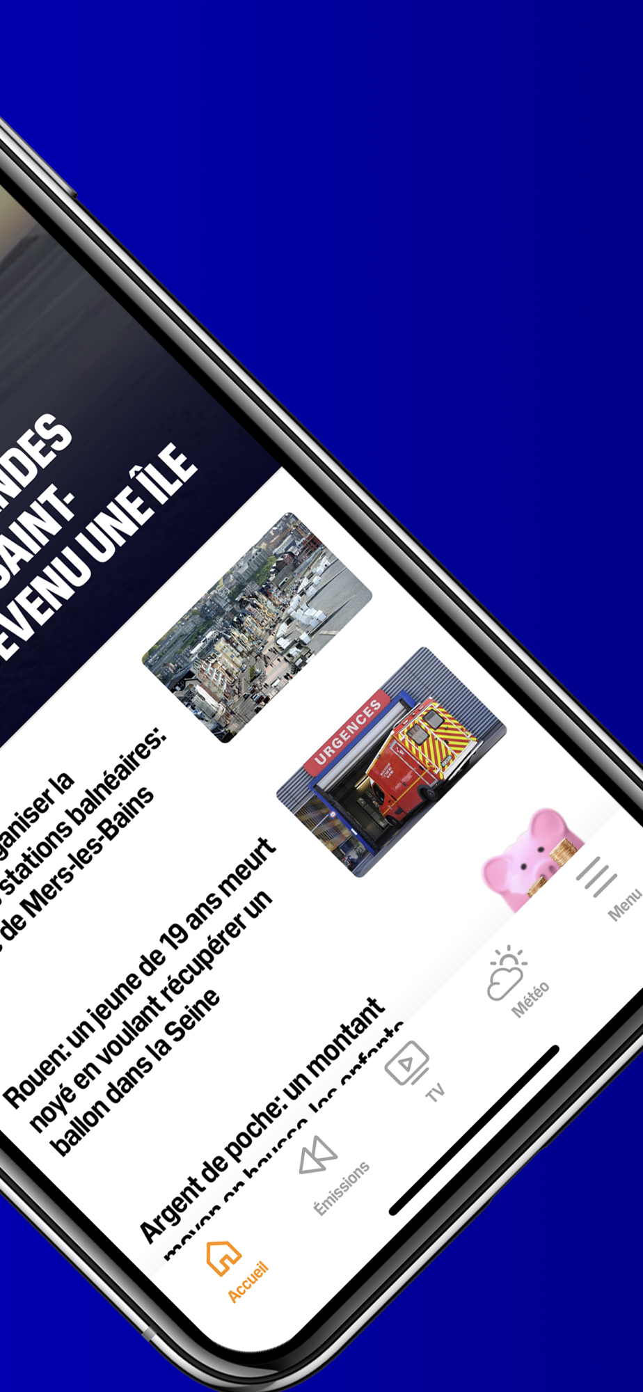 Restez informé(e) 7 jours sur 7, 24h sur 24, des événements marquants des villes Caen, le Havre et de la région Normandie grâce à l’application BFM Normandie.