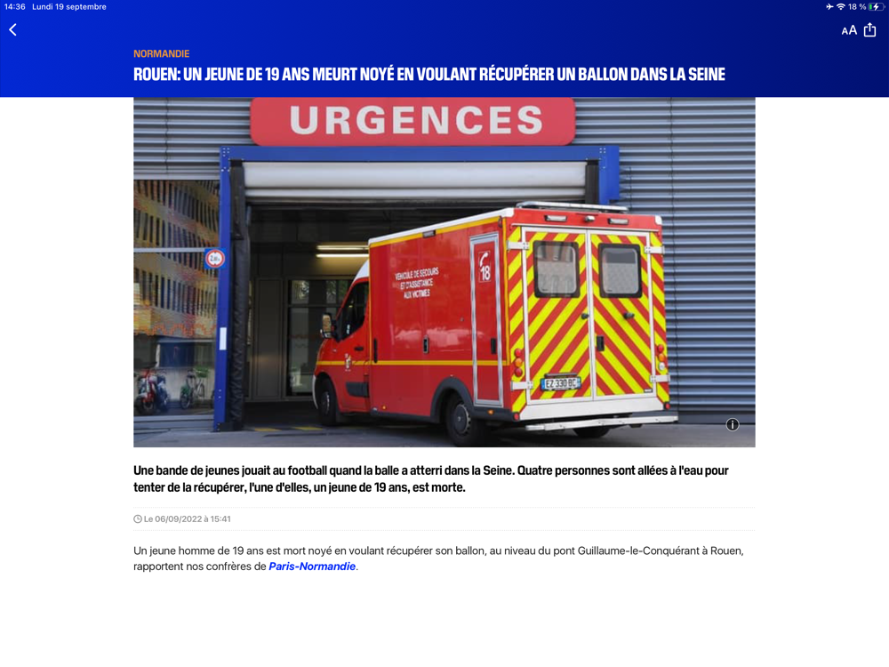 • A la rubrique "Accueil" qui condense l'actualité immanquable sélectionnée par la rédaction de BFM Normandie
