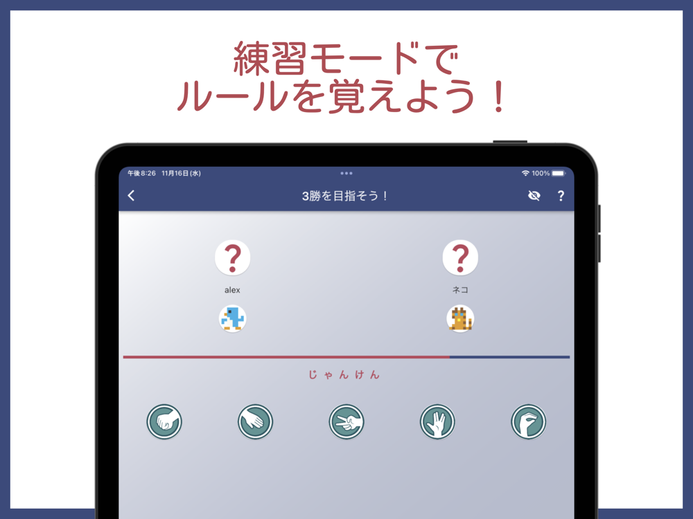 相手の出した手を見ながら、勝つ手を考えましょう。