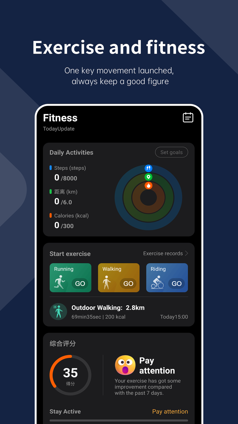 (1)Exercise recording and data analysis: Support recording exercise and exercise data visualization display, and you can view various detailed exercise index analysis to help manage the amount of activity and exercise plan.