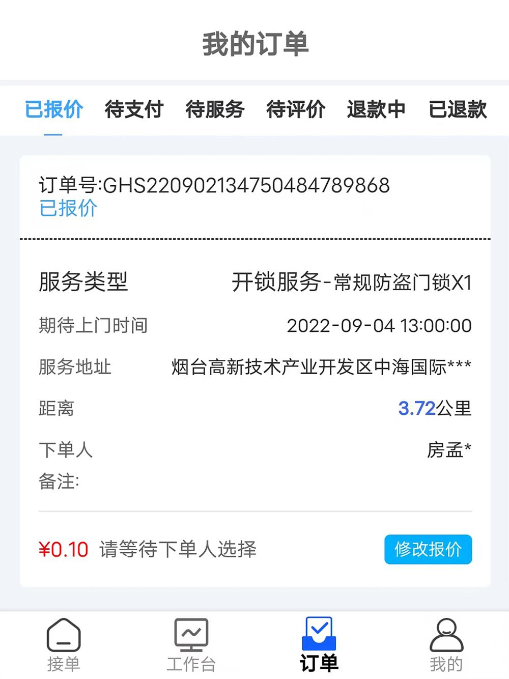 丁咚到家服务版,师傅实名认证,添加技能,在线报价接单