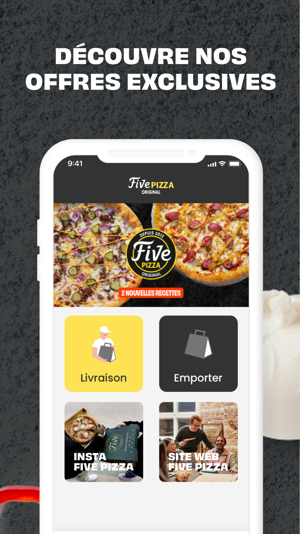 Avec l'application Five Pizza Original, tu pourras aussi :