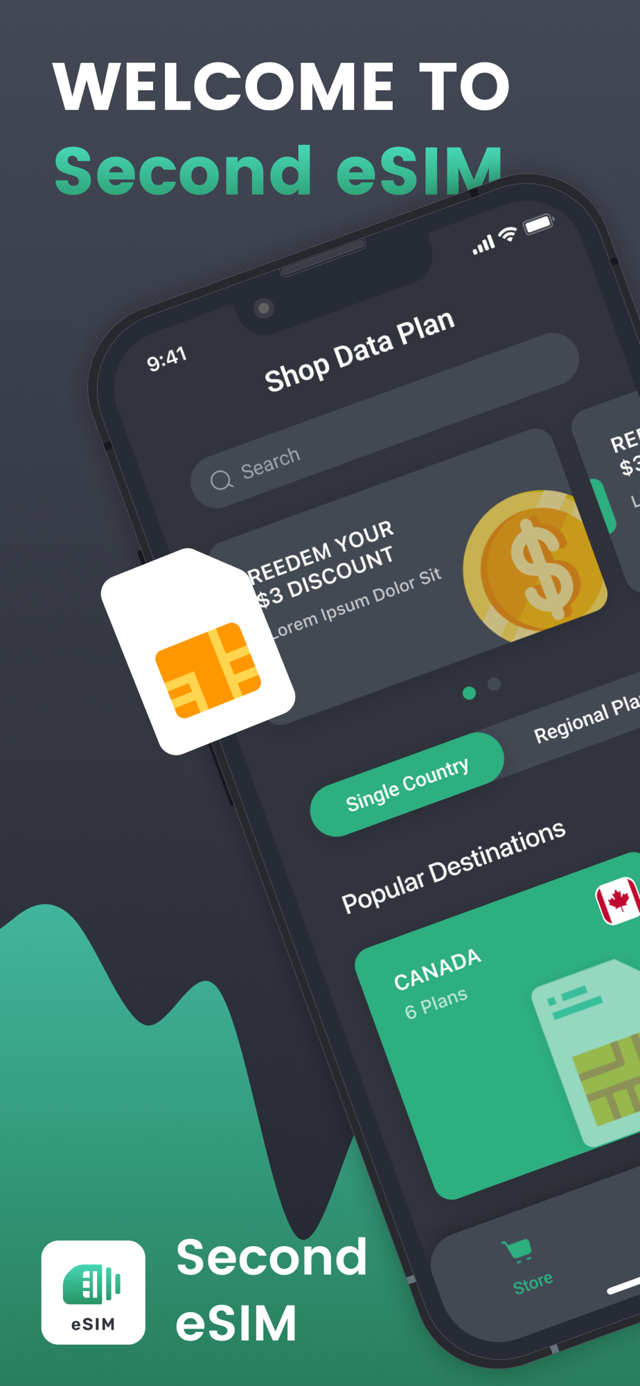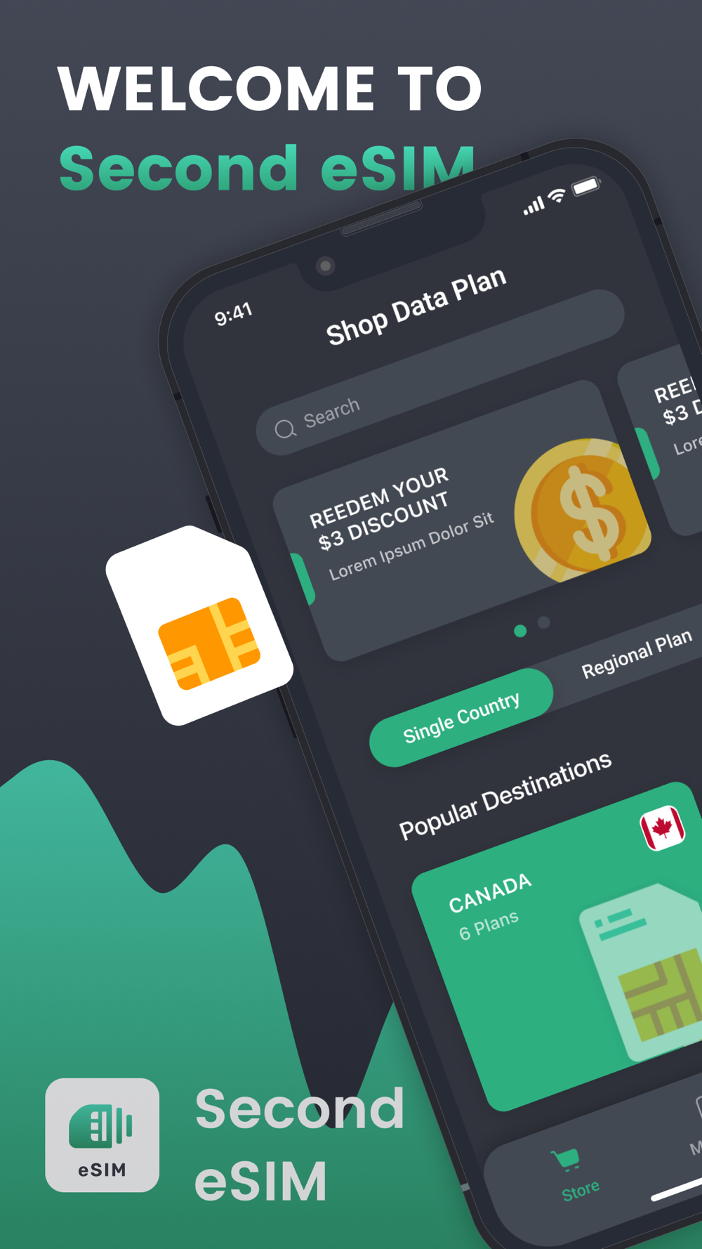 A second phone number (eSIM) and internet line valid in 160 countries and 3000 cities.