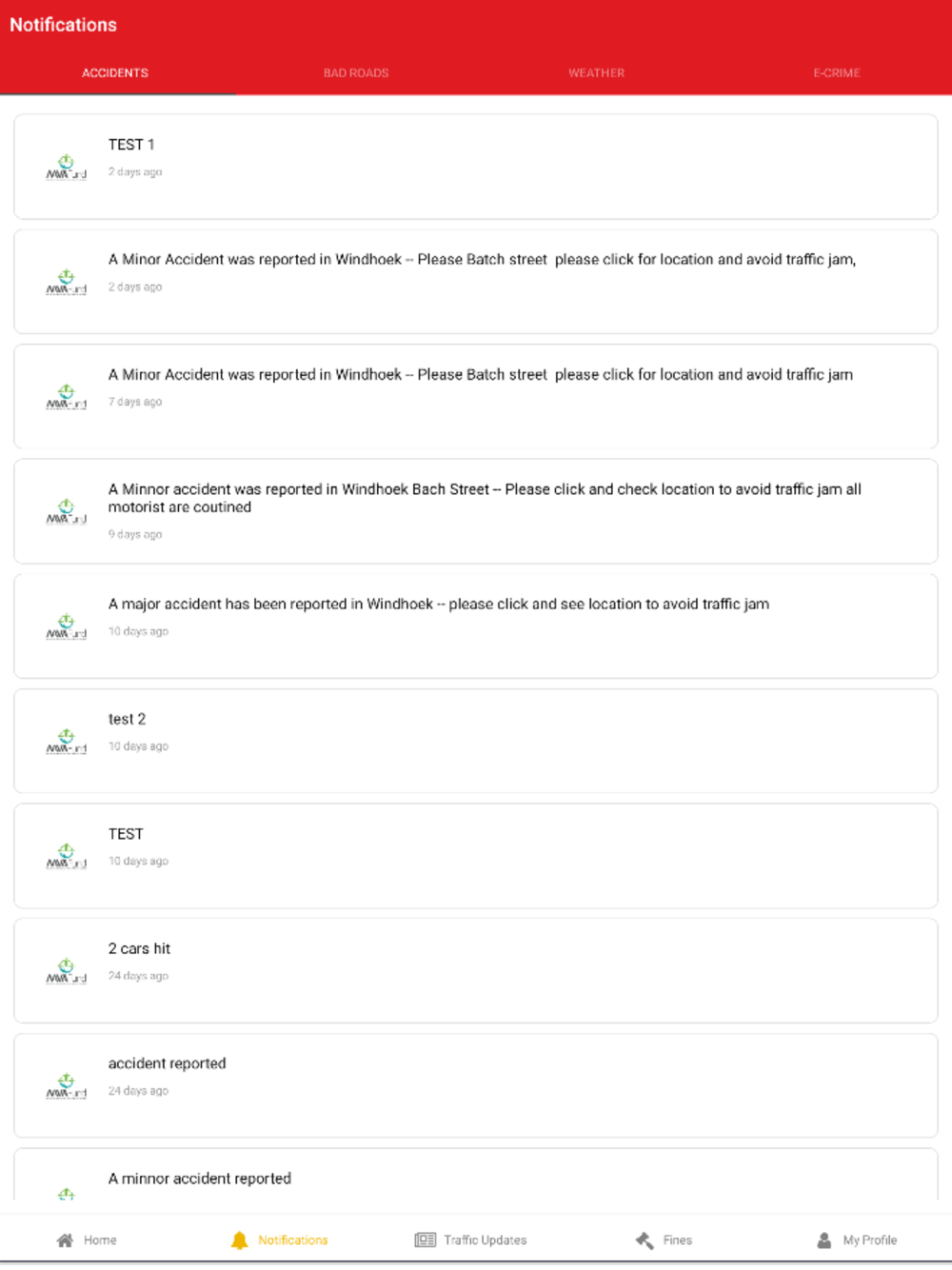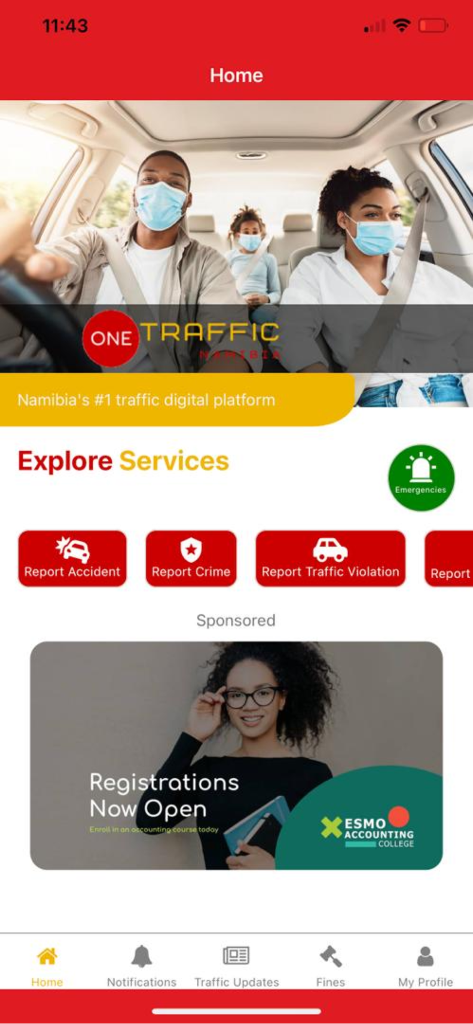 One Traffic Namibia provides instant traffic updates (Accident reports, bad road, bad weather and vehicle fitness rates etc)