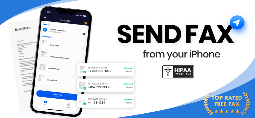 Send fax from phone anytime, anywhere! Easy, fast and secure. Fax Master turns your mobile phone into a fax machine to send documents, pdf, photos and more. You can scan or upload any files. No fax machine required!