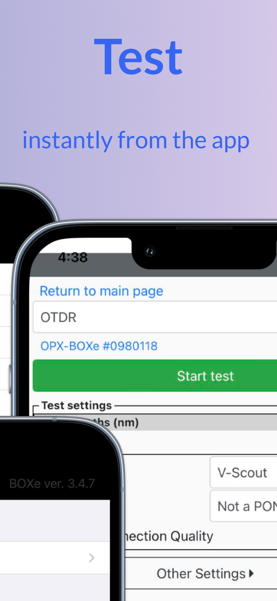 OPX-BOXe Tool app is used to remote administer OPX-BOXe OTDR via Bluetooth.