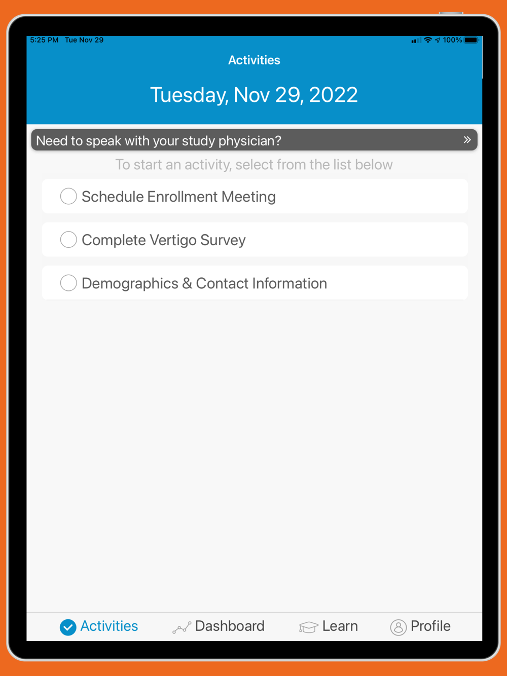This app is for use by people who have successfully screened for this study and have received an activation code to join the study. You can see if you qualify for this study at OtotlithLabs.com/VertigoStudy.