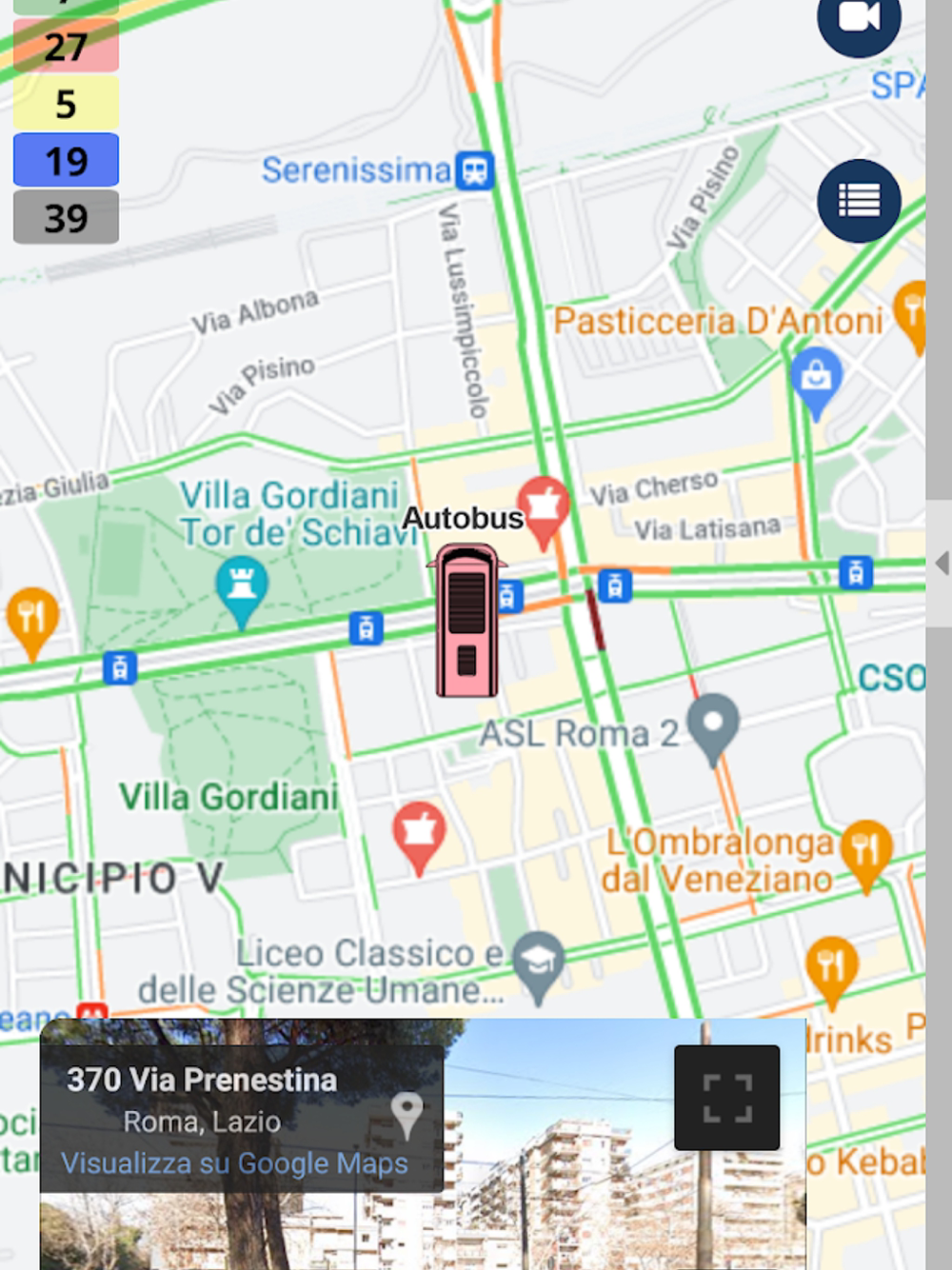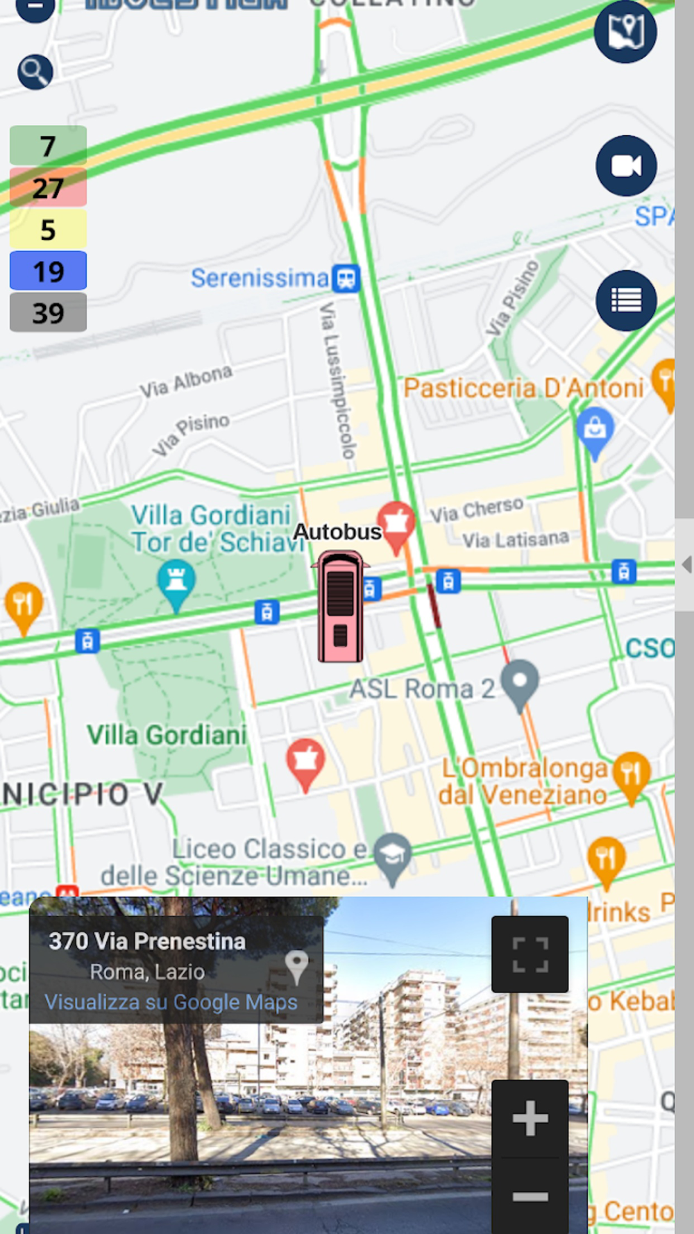 * Simultaneous view of the position on the map together with streetview