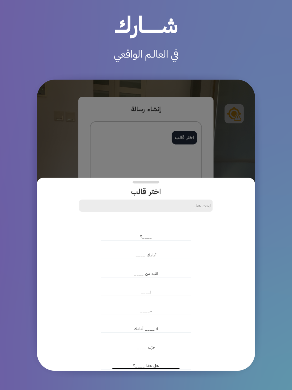قم بإنشاء رسائل عن طريق قوالب متنوعة والتي تحتوي على مجموعة كلمات سهلة الاستخدام حيث يمكن عرضها من خلال AR بواسطة مستخدمي قوستلي شارك أماكنك المفضلة في مدينتك وجميع أنحاء العالم!
