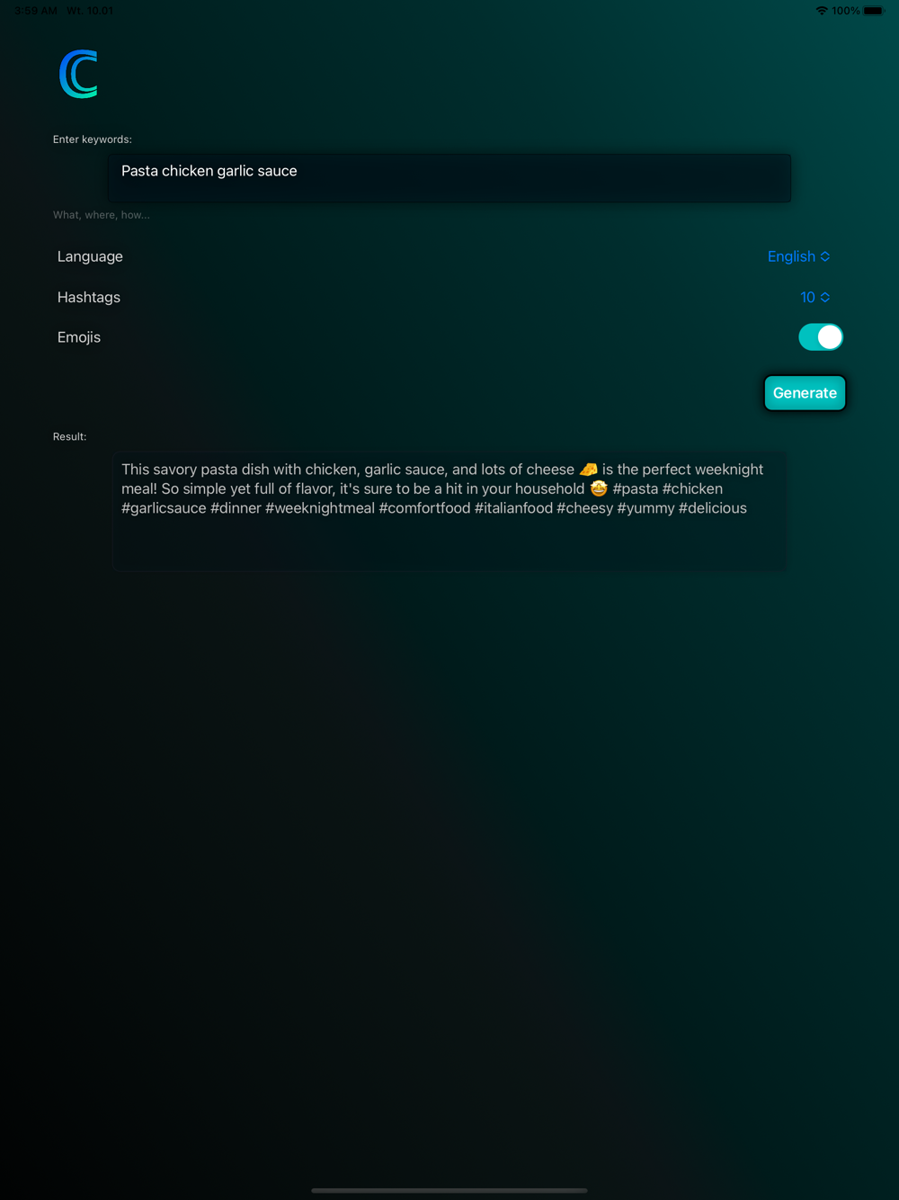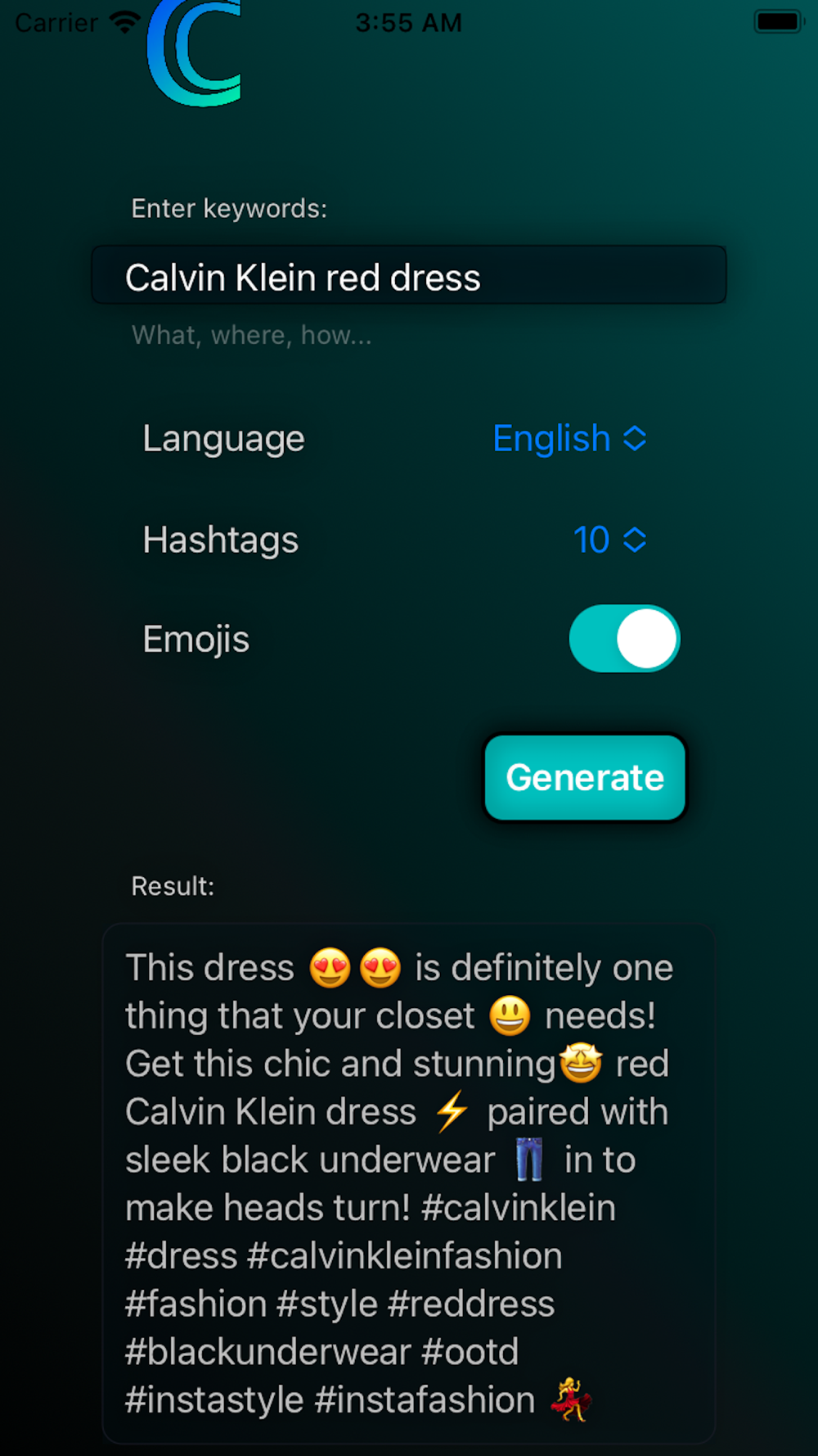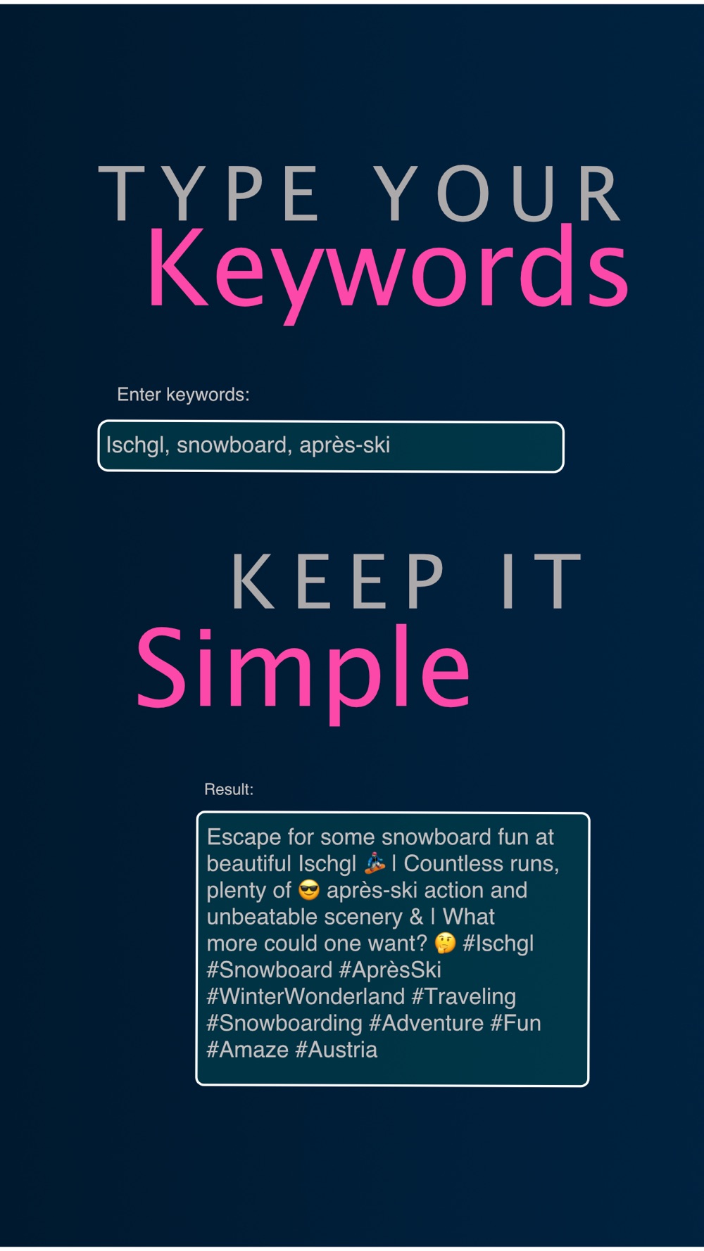 The revolutionary AI-powered app that makes it easier than ever to create perfect descriptions and hashtags for your social media post!. With our app, you can generate descriptions and popular hashtags for Instagram, Facebook, Twitter and more with the help of Artificial Intelligence. With CaptionCraft, you can generate catchy and unique descriptions in any language with just a few taps. Our AI-powered algorithms generate the most popular hashtags to make sure your posts reach the widest possible audience. Try CaptionCraft today and see how easy and fun it is to craft the perfect caption for your posts!