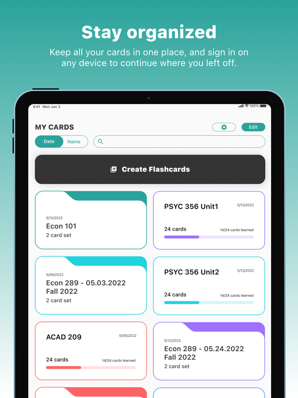 * Color code your flashcard sets and folders