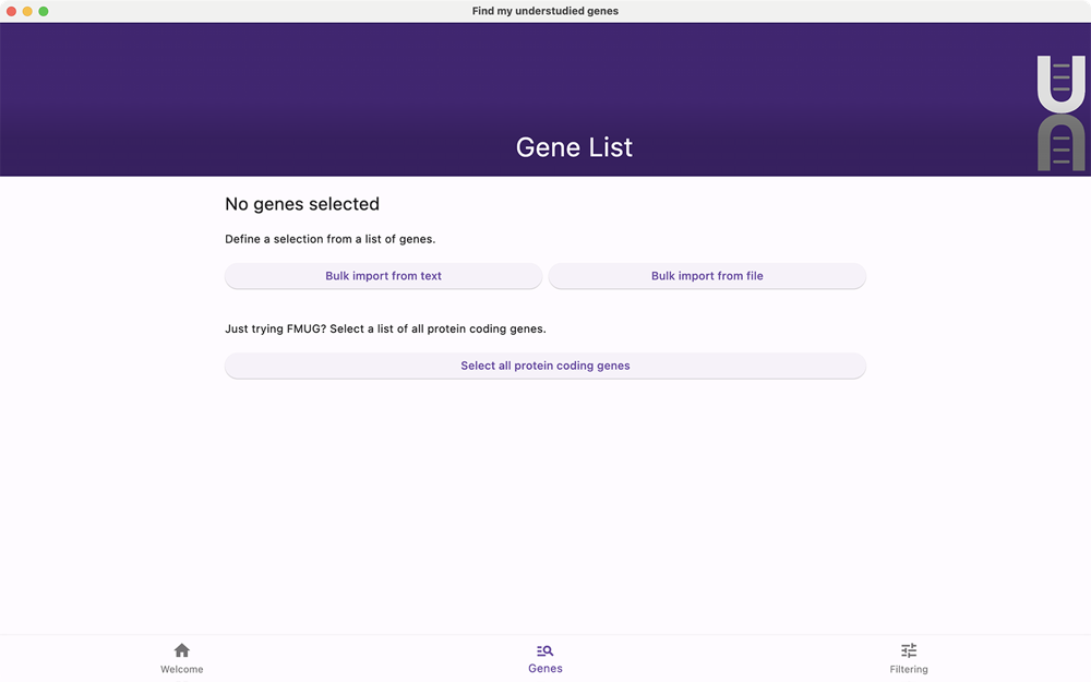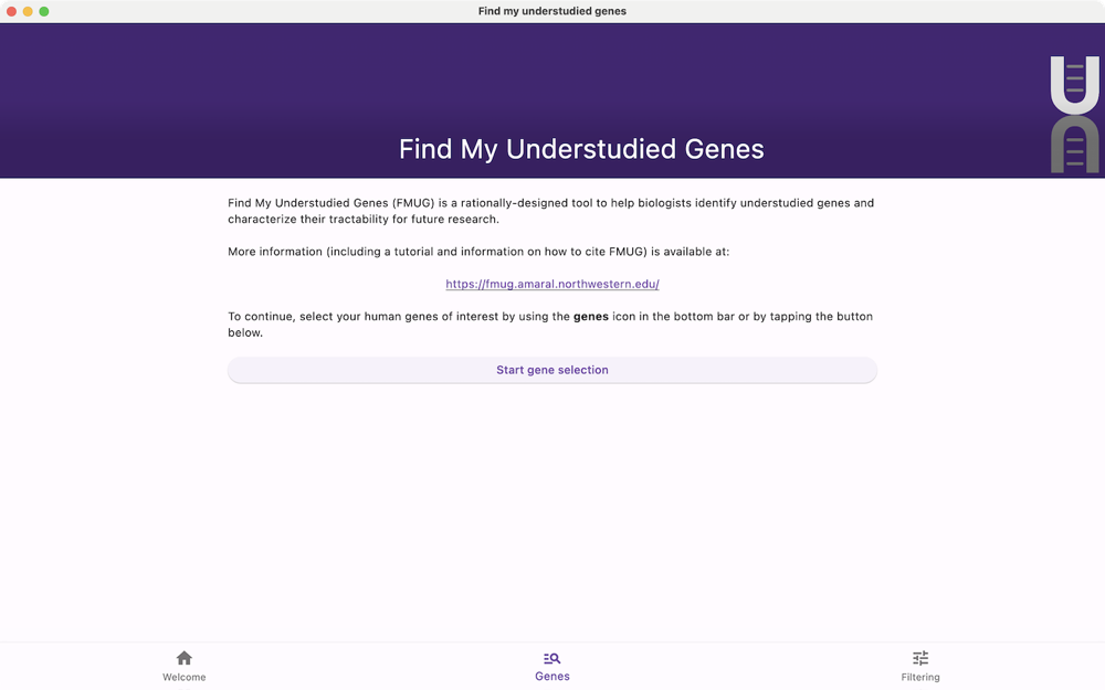 Find My Understudied Genes (FMUG) is a rationally-designed tool to helps biologists identify understudied genes and characterize their tractability for future research.