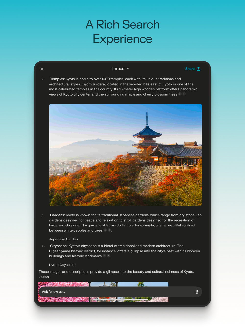 · Thread Follow-Up: Keep the conversation going for a deeper understanding.