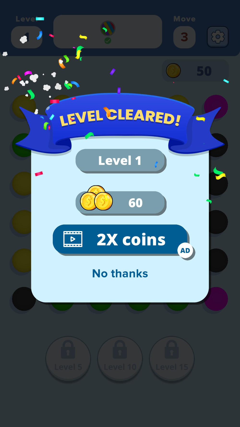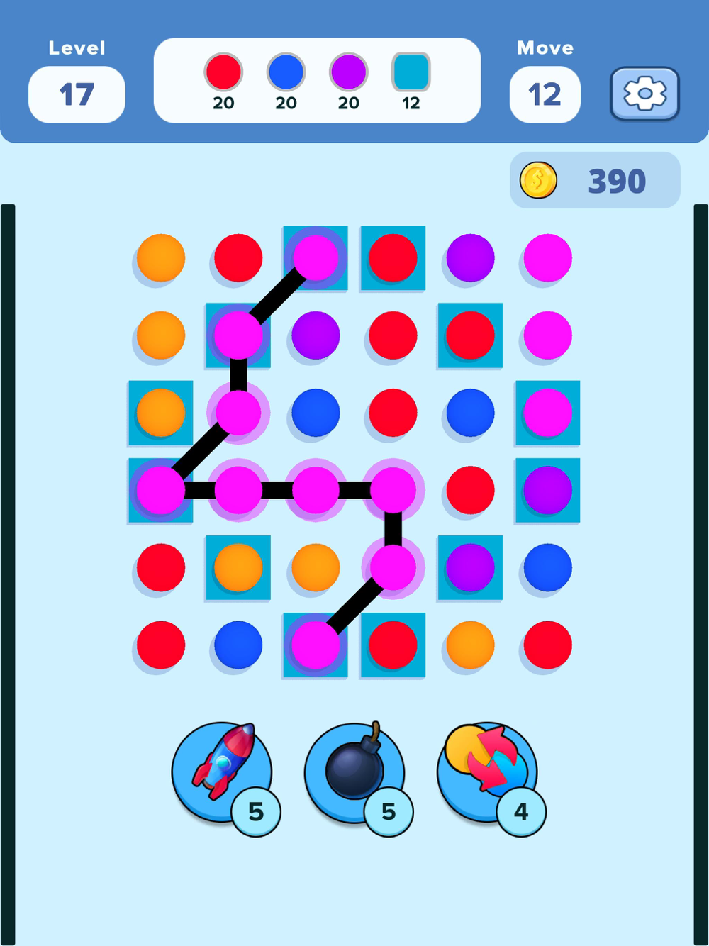Swipe on the same color balls to connect them. Connect a minimum of 3 balls to destroy connected balls.