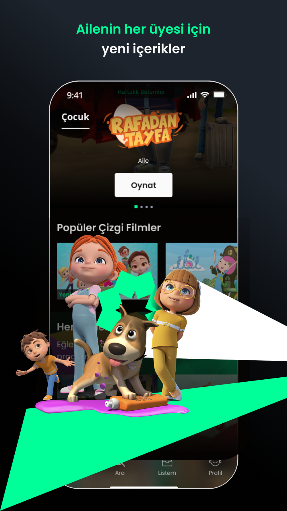 Güvenilir bir şekilde ailenle izleyebileceğin eğlenceli, dolu dolu ve yüksek kaliteli içerikler.