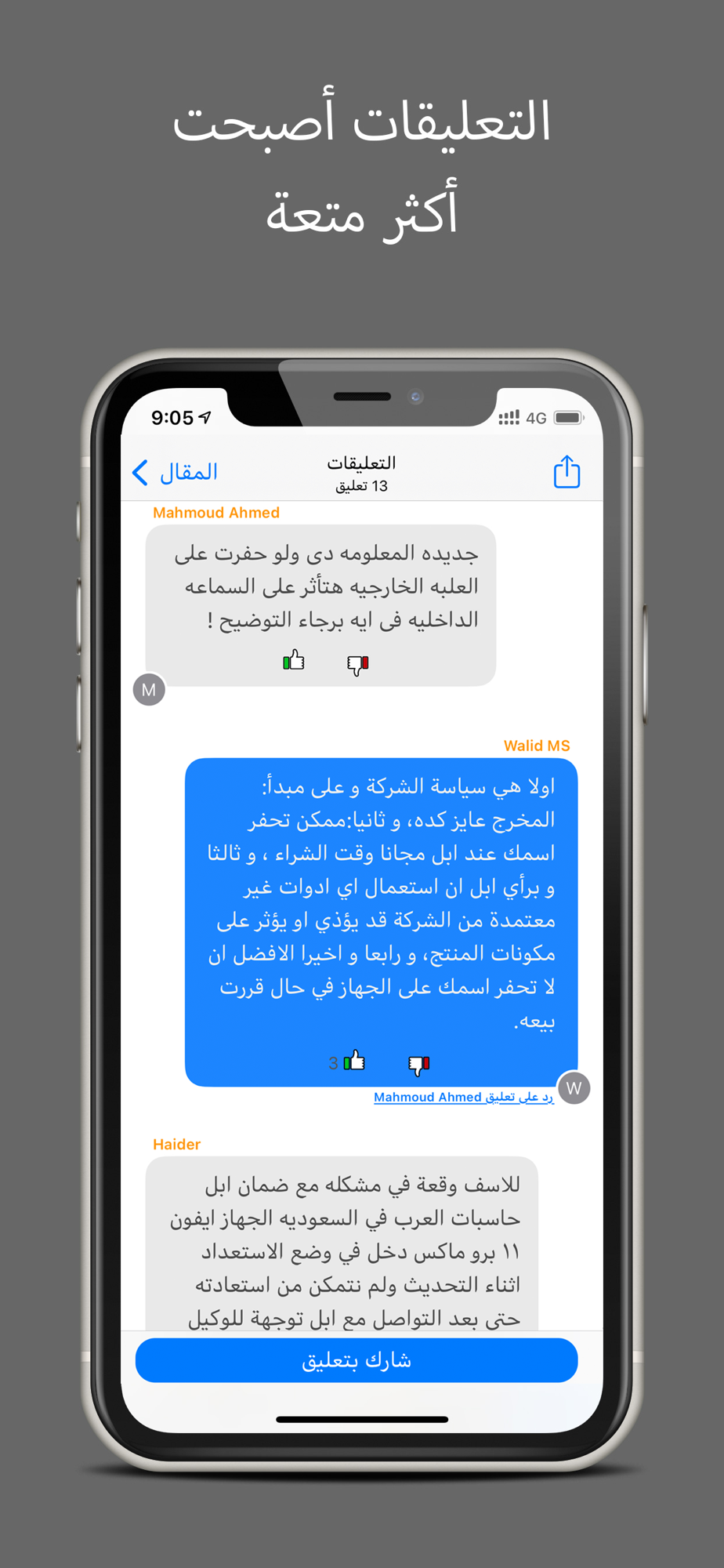 * التعليقات على المقال بشكل المحادثات، سهلة جداً وممتعة في الاستخدام