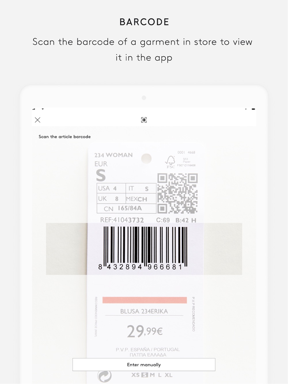 You can also use the app when you are shopping in our physical stores. If you see an item you want to buy but there are none left in your size or preferred colour, you can get it via our app. Scan the barcode of the item, or enter it manually, to see where you can find one or to buy it online. Once you have placed the order, you can receive it at home or at your preferred location.
