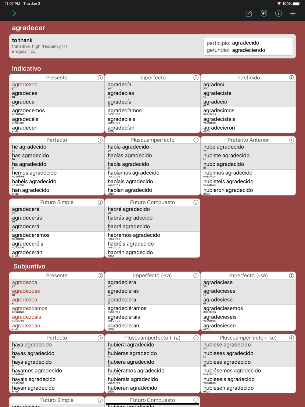 • Enjoy learning the conjugation with the configurable multiple choice, flashcard and written exercises.