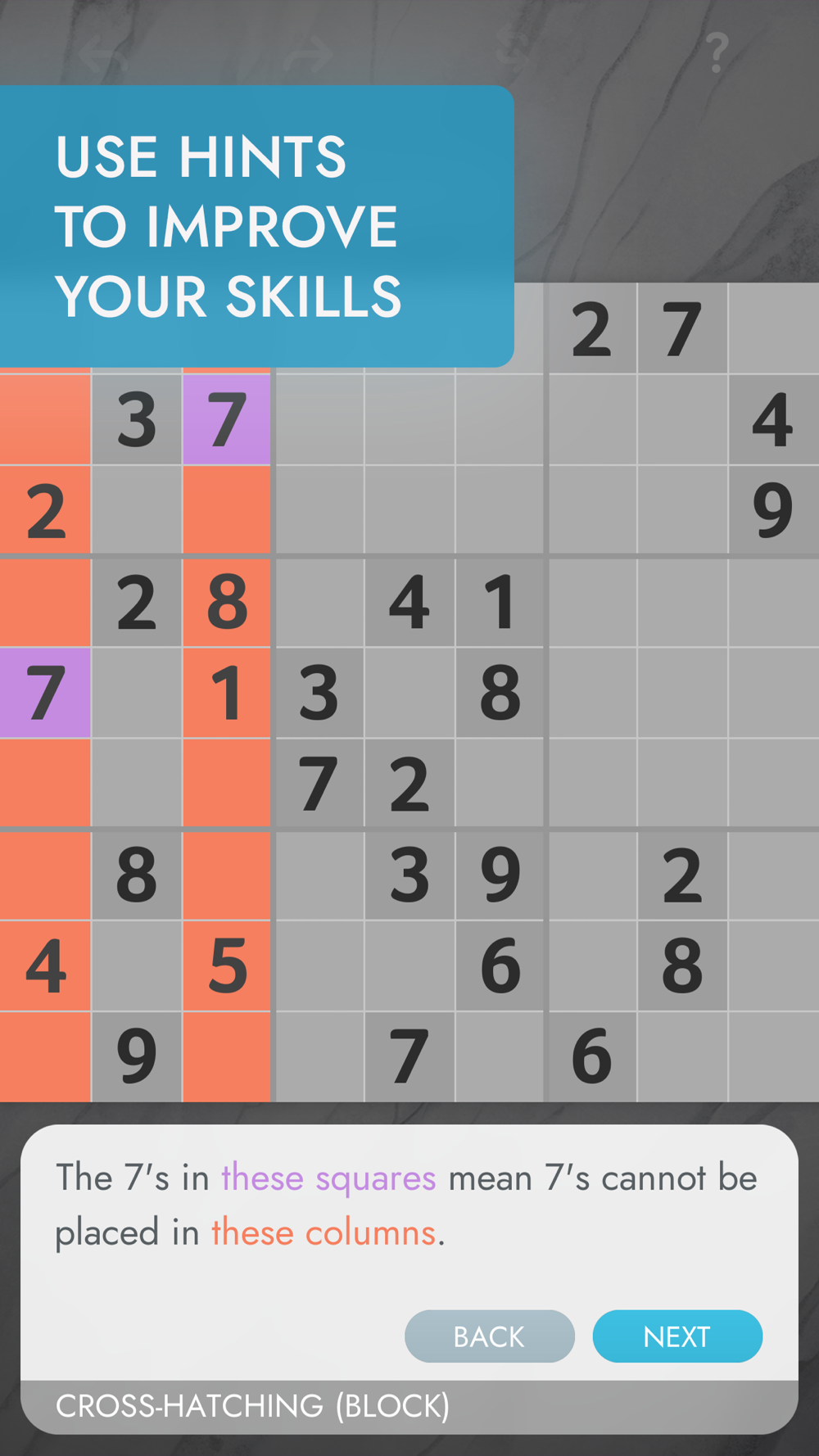 Brainium Sudoku also features the first and best smart hint system available. It goes beyond simply giving you the answers. Instead, it helps you learn and improve your skills by teaching you “why” the answer is what it is.