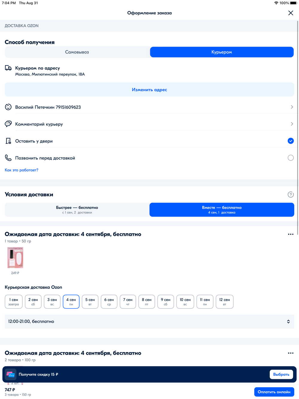 - скидки до 30% при оплате Ozon Картой;