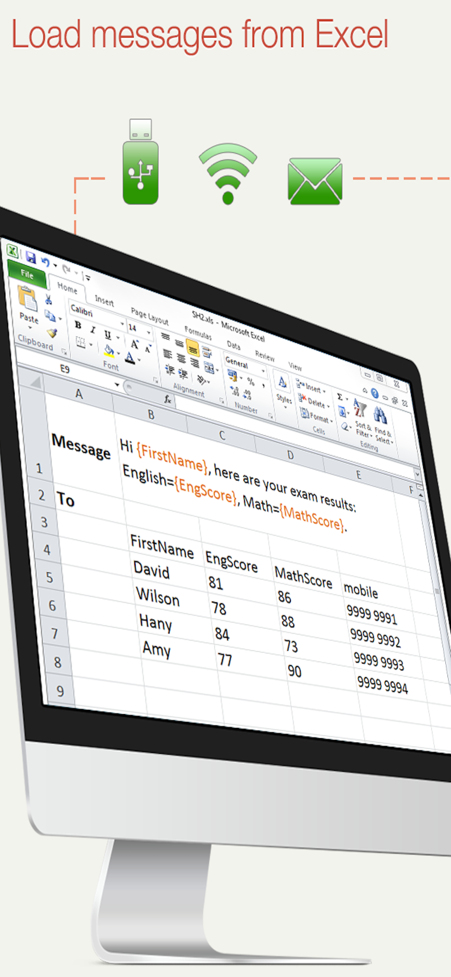 SA Group Text is the most efficient way to send group messages. You can add recipient names and phone numbers in an Excel file. You can enter static or personalized text messages right in the Excel spreadsheet. For example, if you enter “Hi {first name}, ...” in a message, the app will take the first name of the recipients and personalize the message, generating text such as “Hi David, …” , “Hi Michael, …”…