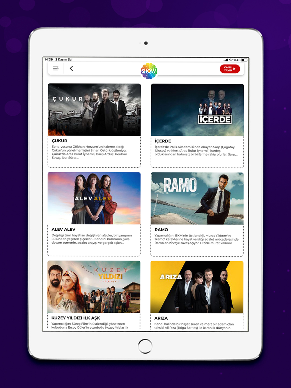 Show TV The iOS application offers viewers the opportunity to watch Show TV at any time and place independently.