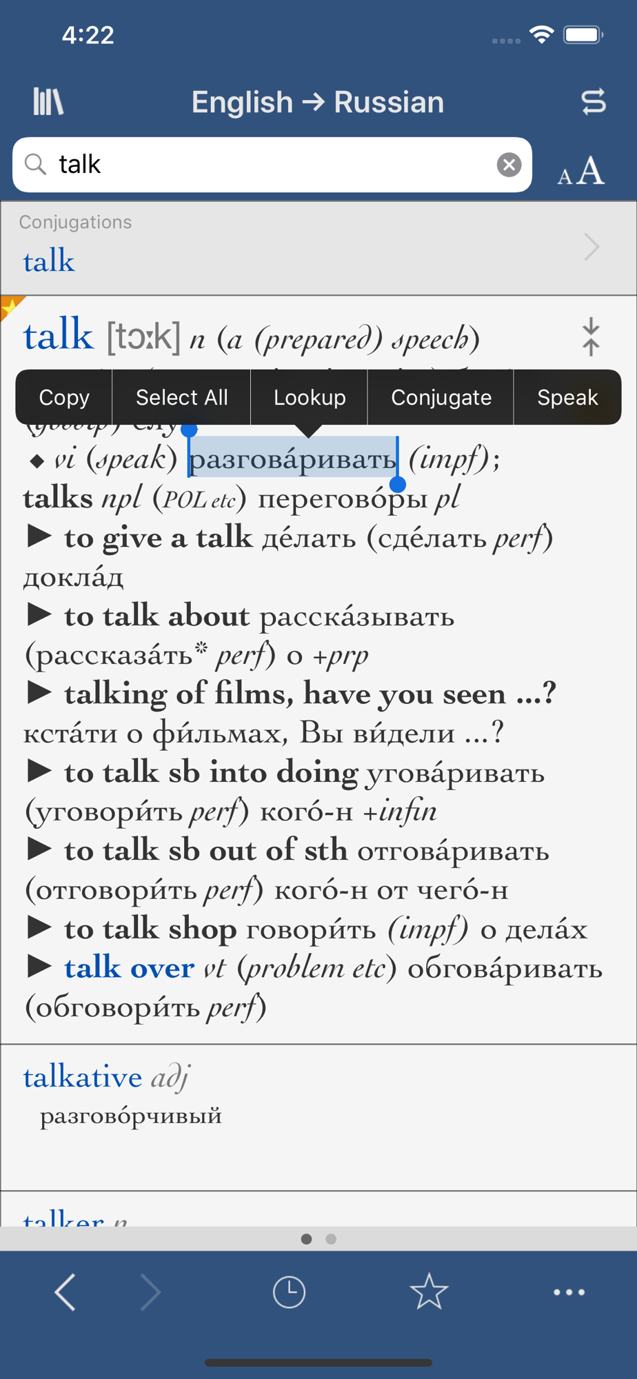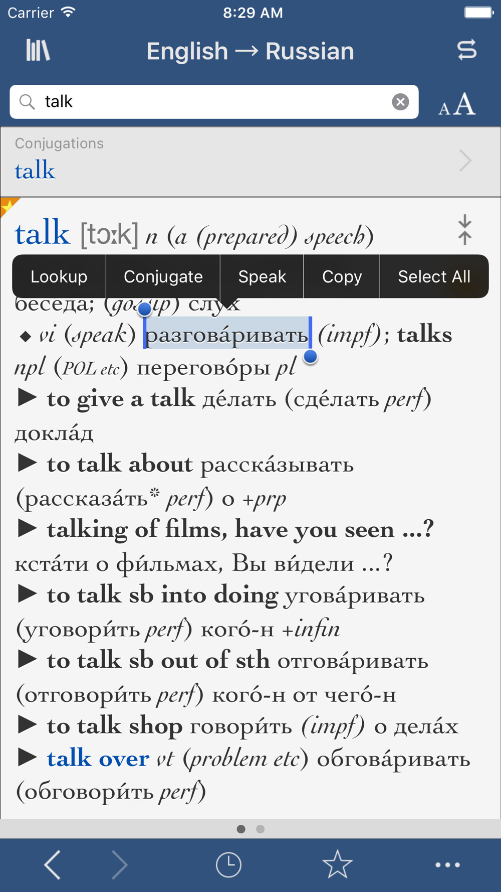 Over 90,000 translations • Conjugates thousands of Russian and English verbs • Hundreds of usage notes and examples • No internet connection required