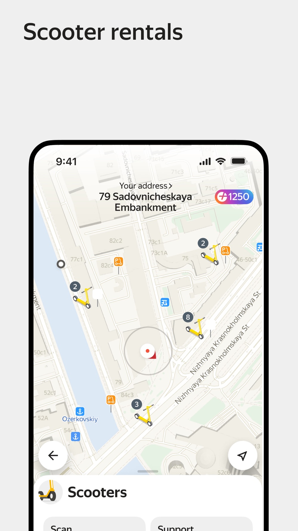Yandex Go uses smart algorithms built on live traffic data to connect riders with drivers who can reach them fastest. Depending on your location, the app will also suggest alternative pickup points to help lower your fare.