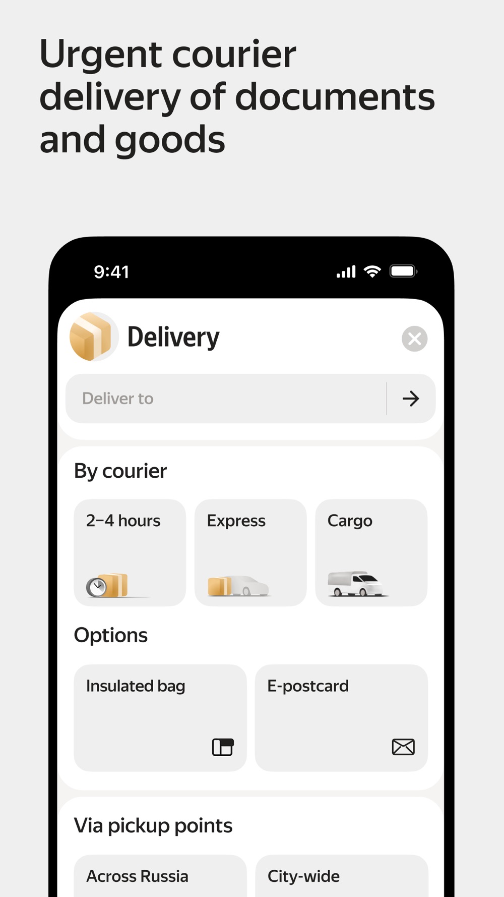 Yandex Go is an app to request rides, order food from restaurants or send items across town. Request a ride or delivery with just a tap and track your driver in real time. Never waste time again with another call center or parking problem.