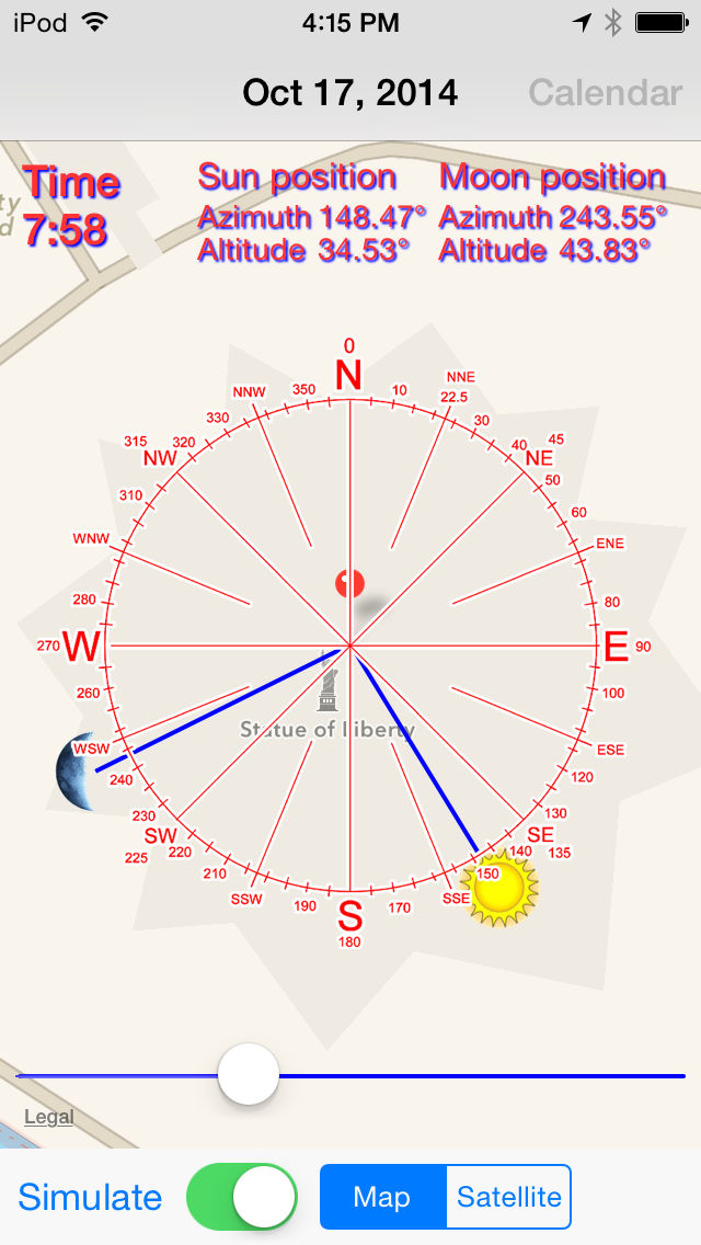 Best Photo times simulates the position of both the Sun and Moon, helps you determine the best shooting time to compose your pictures based on the direction of the light for any moment, any location.