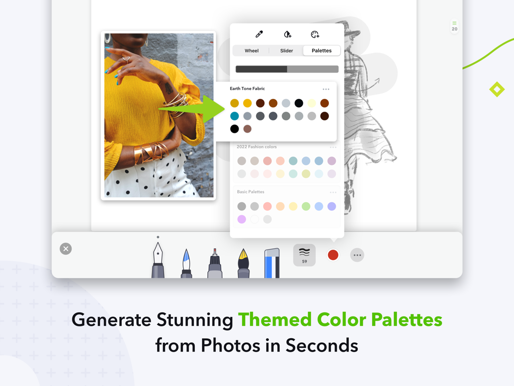 - Get colors from a photo and generate stunning color palettes in seconds* (iPad only)