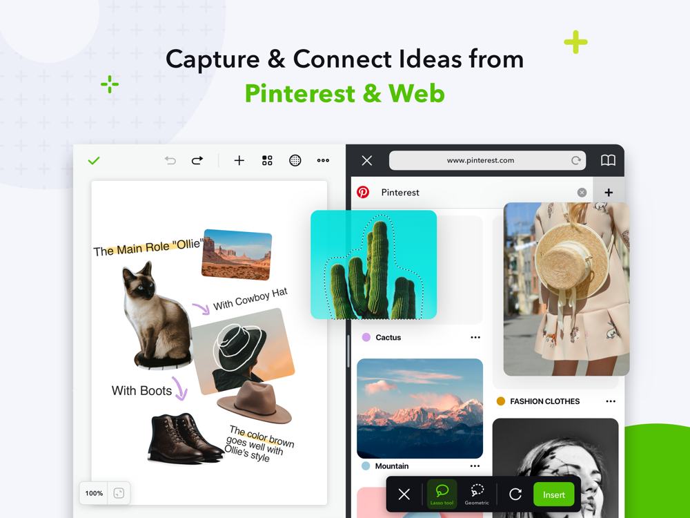 - Web Clipper – Clip images, texts or screenshots from Pinterest and websites with easy drag and drop (iPad only)