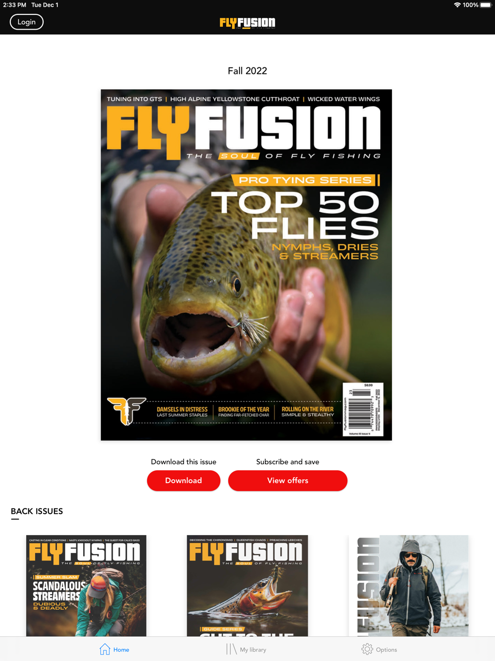 This is a free app download. Within the app users can purchase the current issue and back issues.
